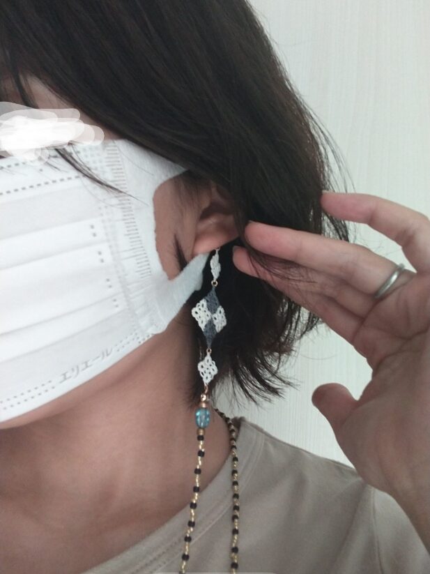 マスクストラップとは、マスクの耳掛け部分に取り付けて首にかけて使用するものです。