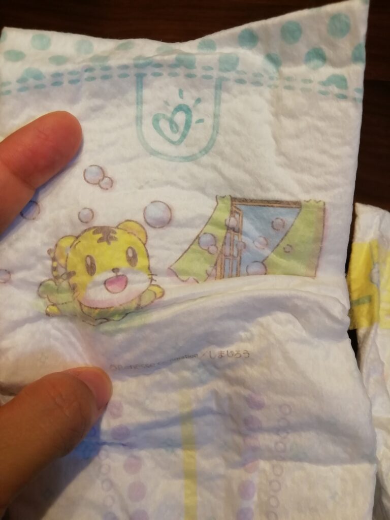 パンパースにはおしりにしまじろうが、メリーズは全体的にメリーズうさちゃんがプリントされています。