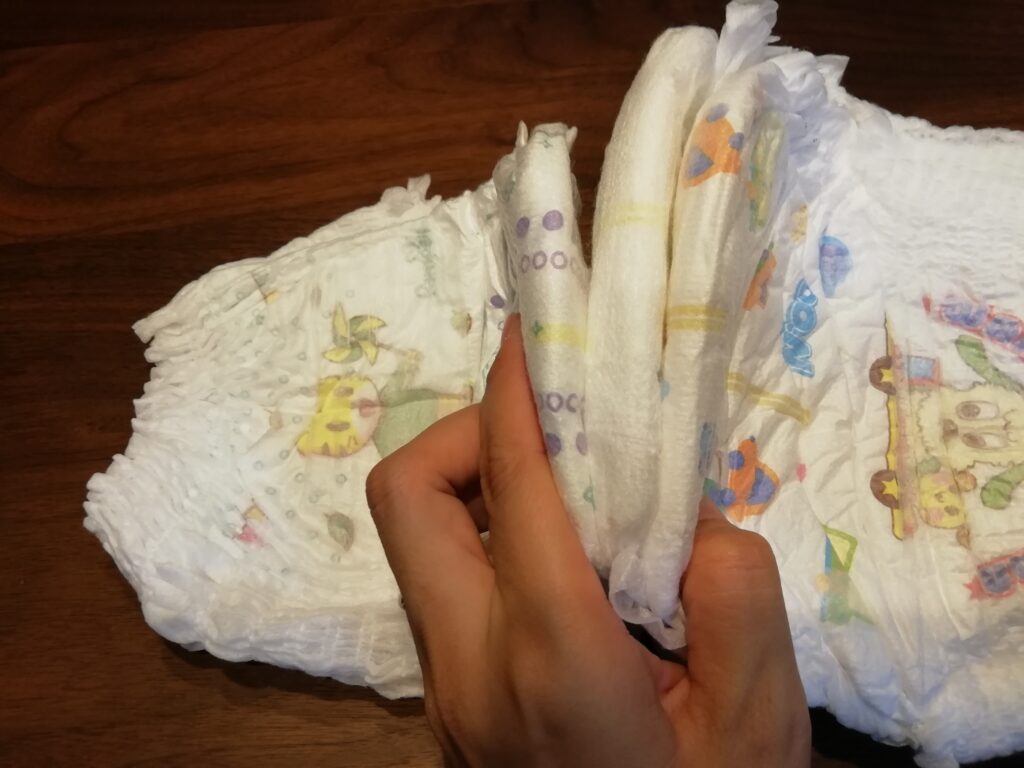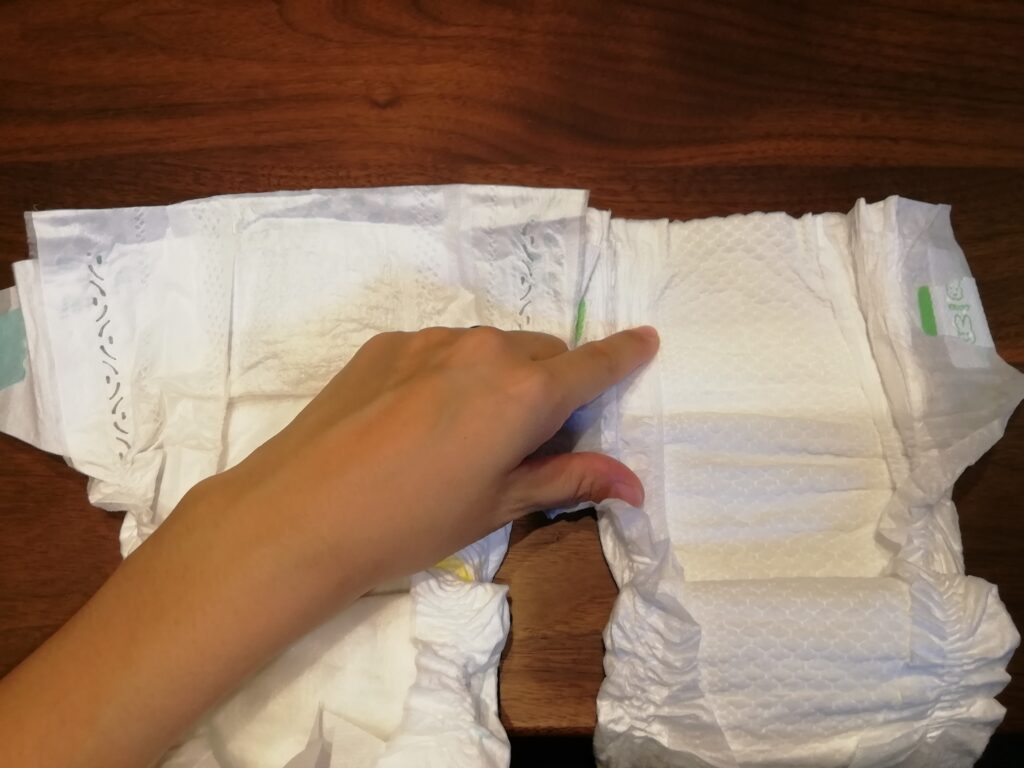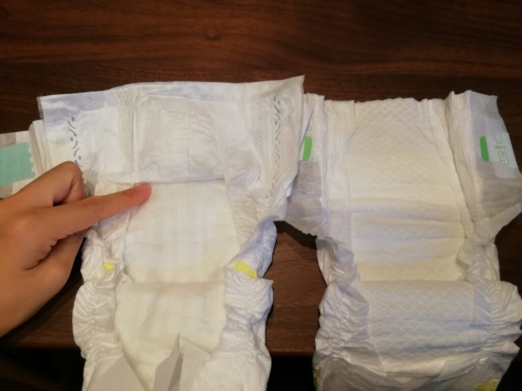 触った感じは、パンパースの方が紙っぽくカサカサしていて