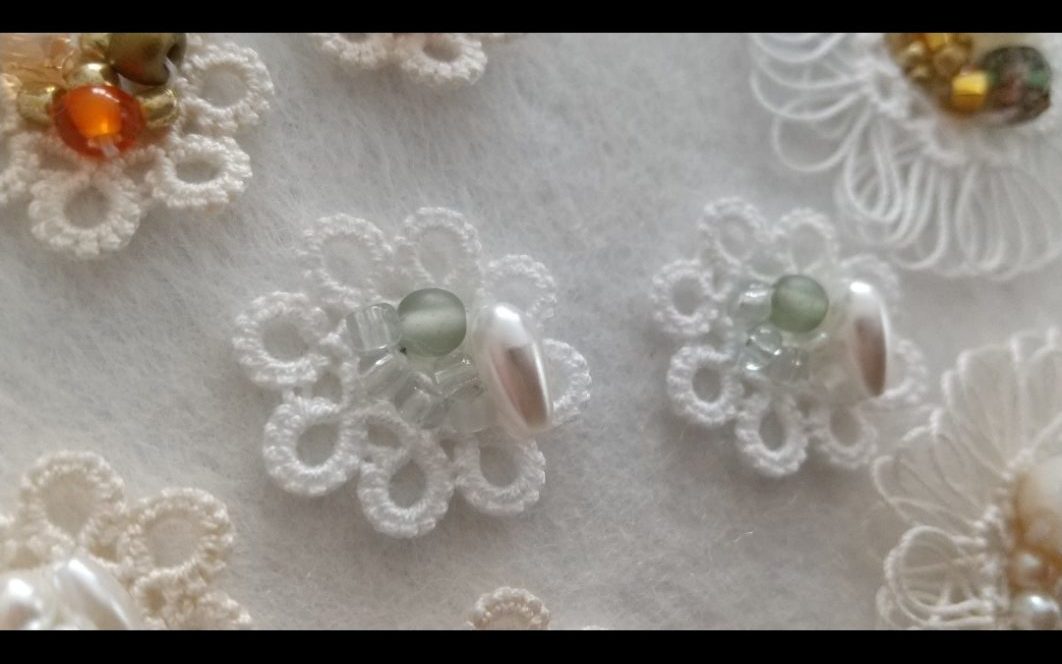 薄いグリーンのすりガラスのようなビーズをアクセントに合わせました。