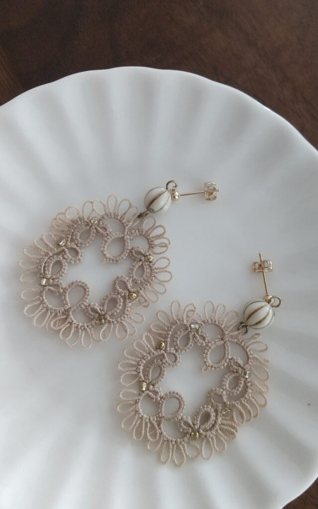 こちらのパターンは、揺れるタイプの耳飾り(イヤリングやピアス)に仕上げていくのですが
