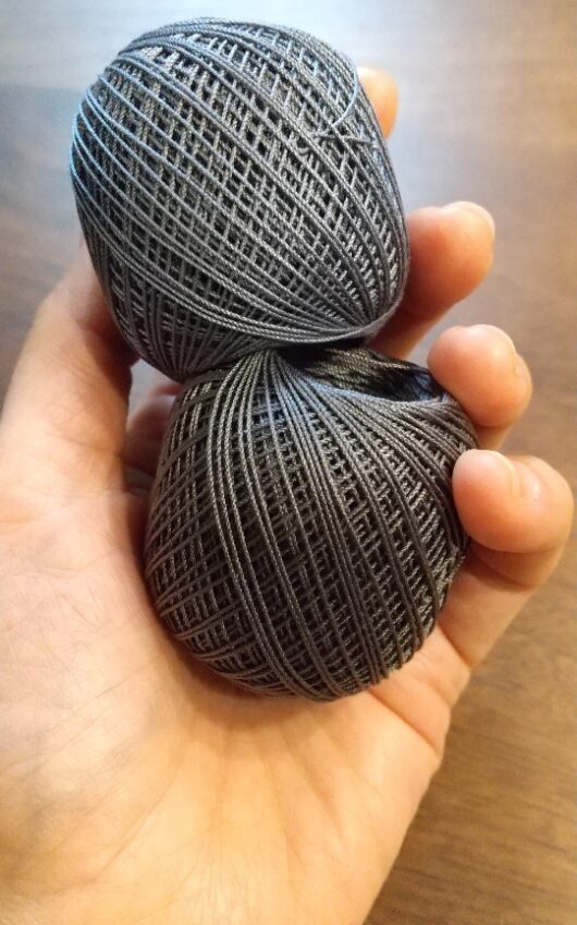 手違いで届いた糸は、紫がかったグレーのような絶妙な色合いが素敵。