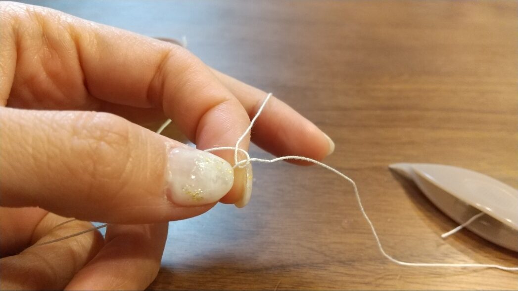 先ほどとは違って、下の糸が輪っかになっていますね。